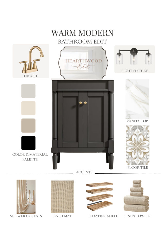 - Linen Beige Shower Curtain with Black Ruffle Hem